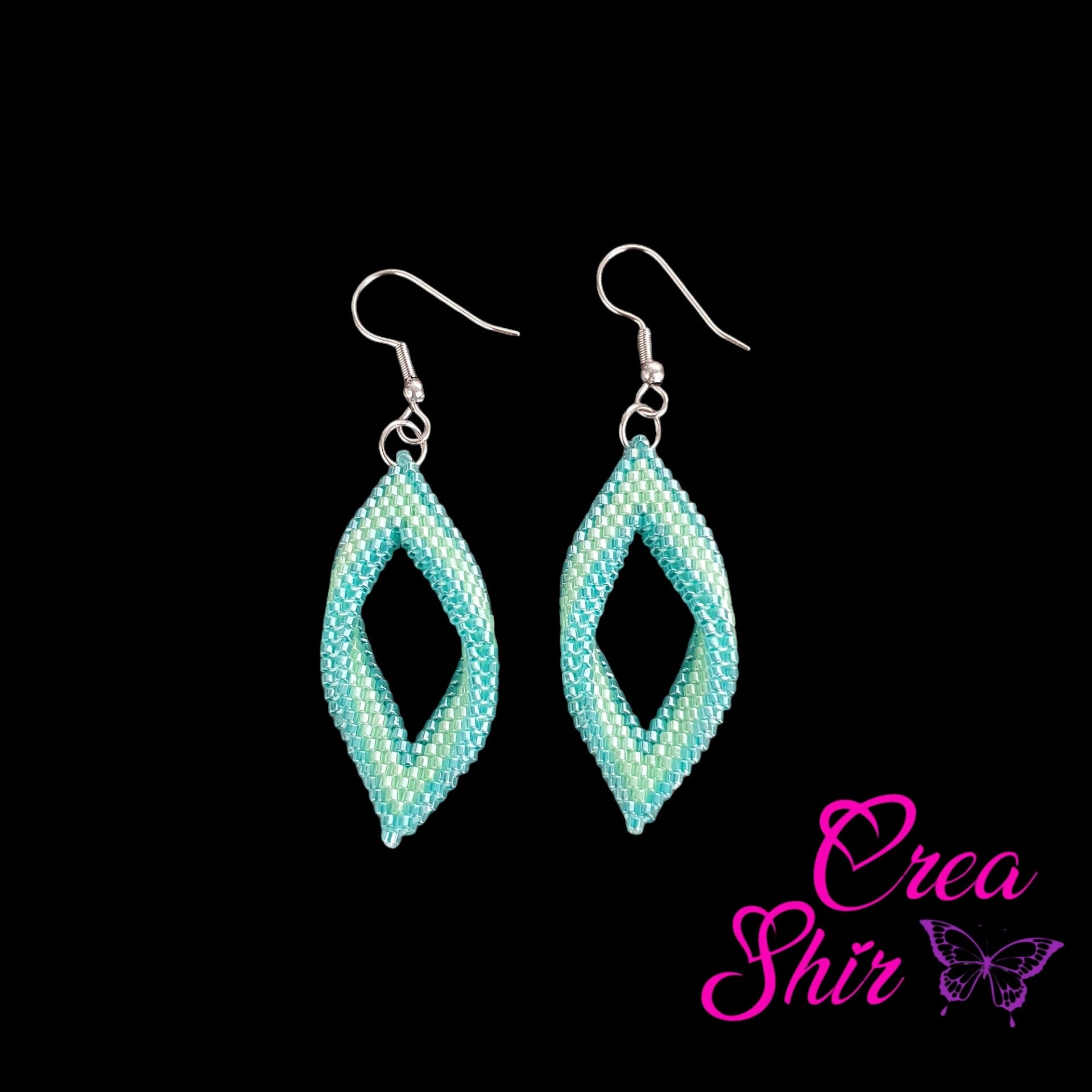 Deze peyote twist oorbellen zijn gemaakt met miyuki delica kralen.